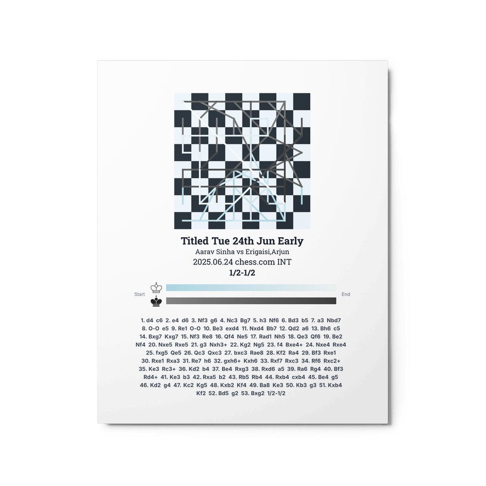Museum-quality poster on thick, durable matte paper. A sharp, clean look for any chess visualisation.