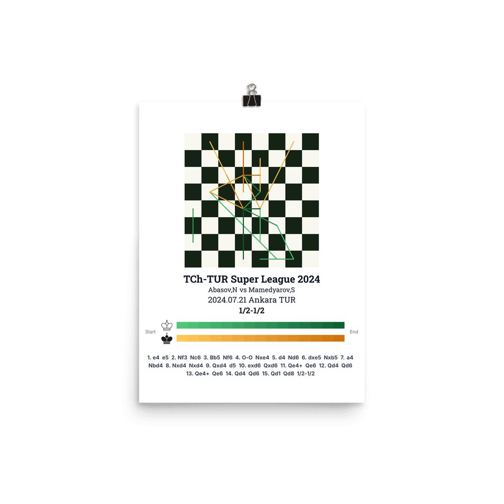 Museum-quality poster on thick, durable matte paper. A sharp, clean look for any chess visualisation.