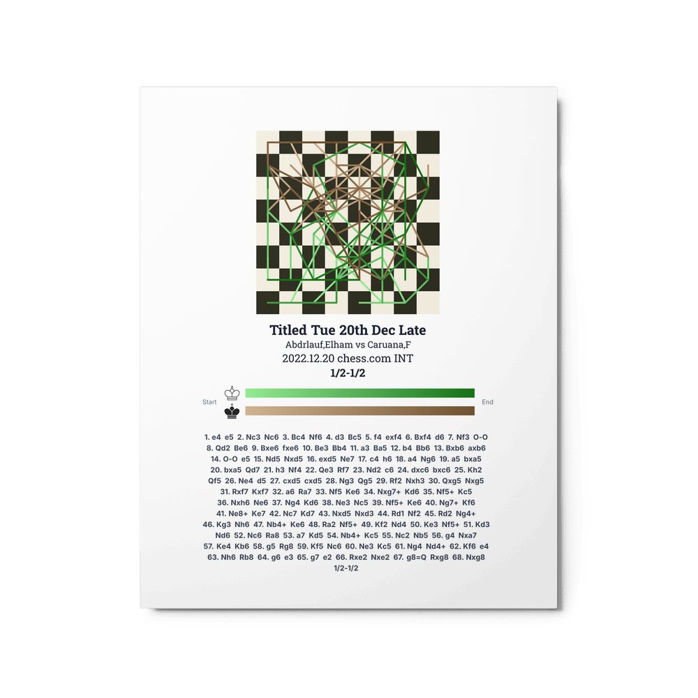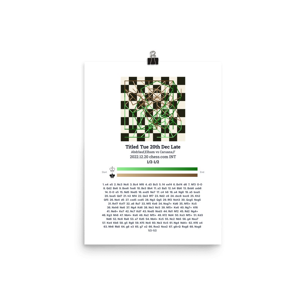 Museum-quality poster on thick, durable matte paper. A sharp, clean look for any chess visualisation.