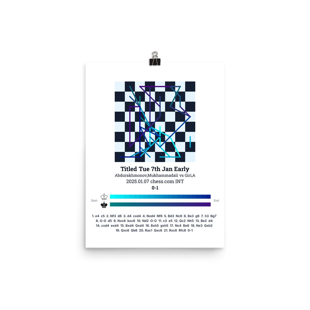 Museum-quality poster on thick, durable matte paper. A sharp, clean look for any chess visualisation.