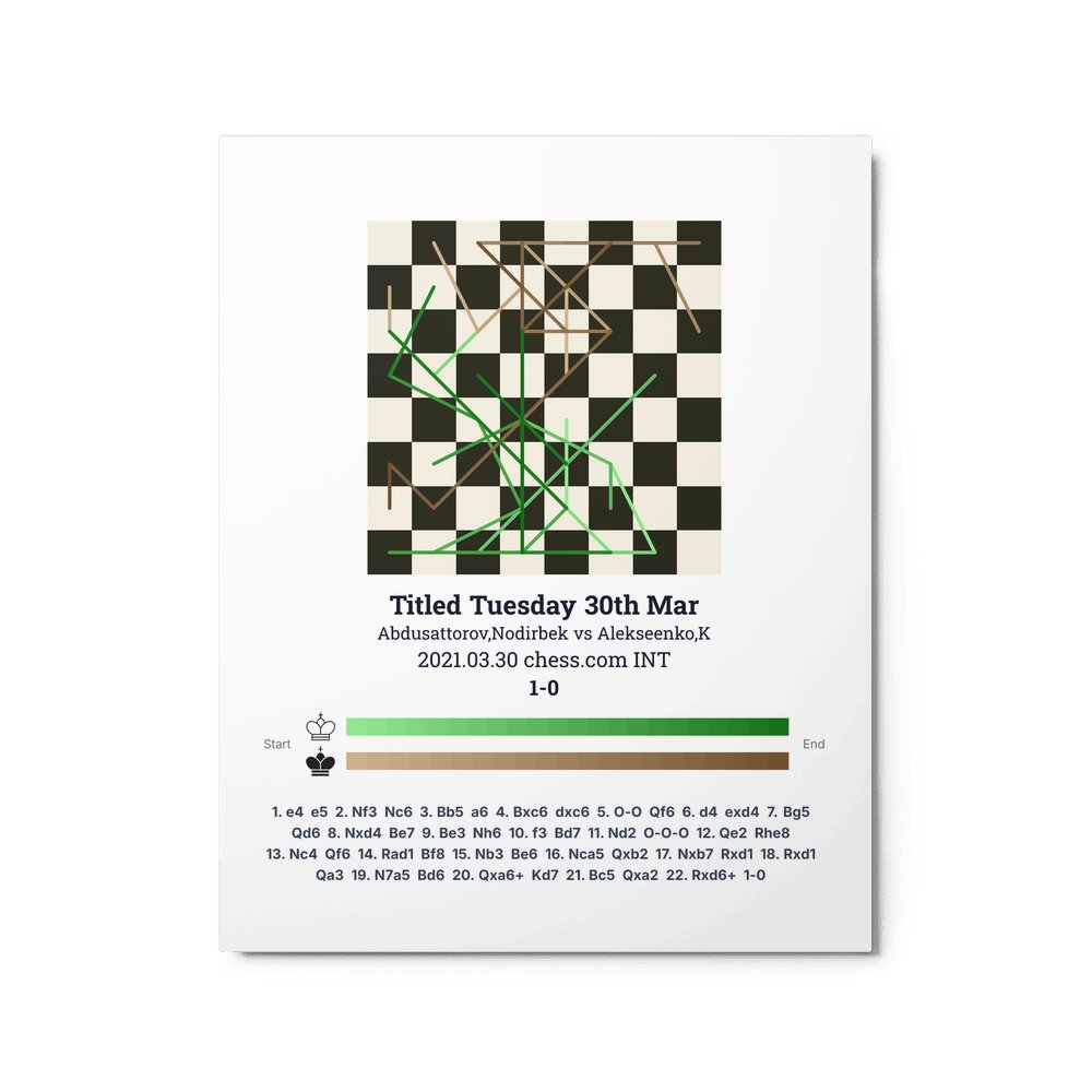 Museum-quality poster on thick, durable matte paper. A sharp, clean look for any chess visualisation.