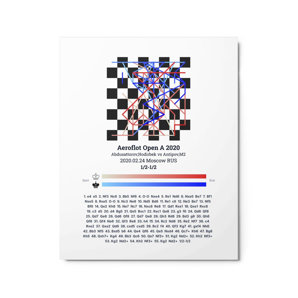 Museum-quality poster on thick, durable matte paper. A sharp, clean look for any chess visualisation.