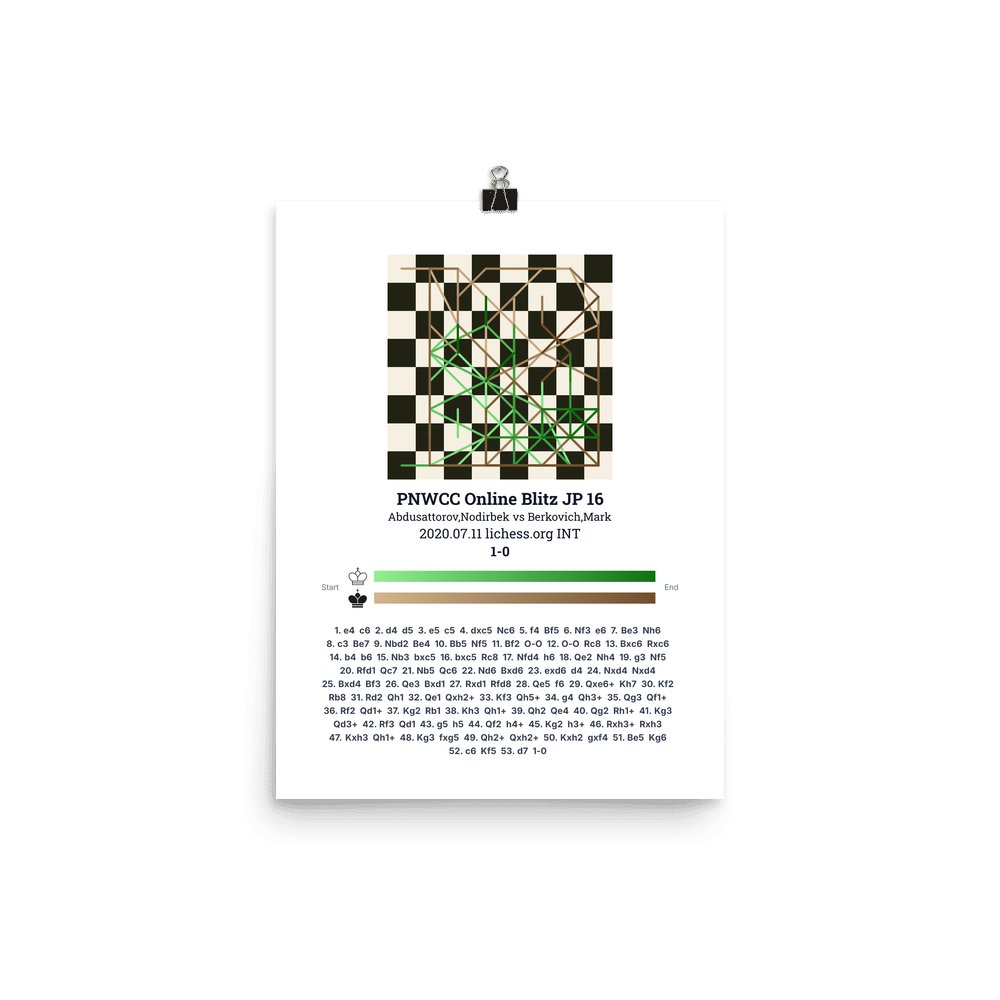Museum-quality poster on thick, durable matte paper. A sharp, clean look for any chess visualisation.