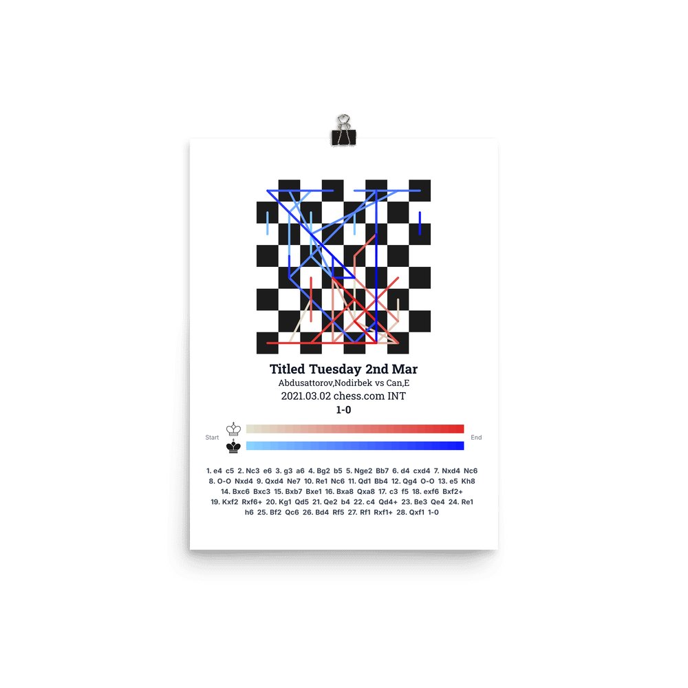 Museum-quality poster on thick, durable matte paper. A sharp, clean look for any chess visualisation.