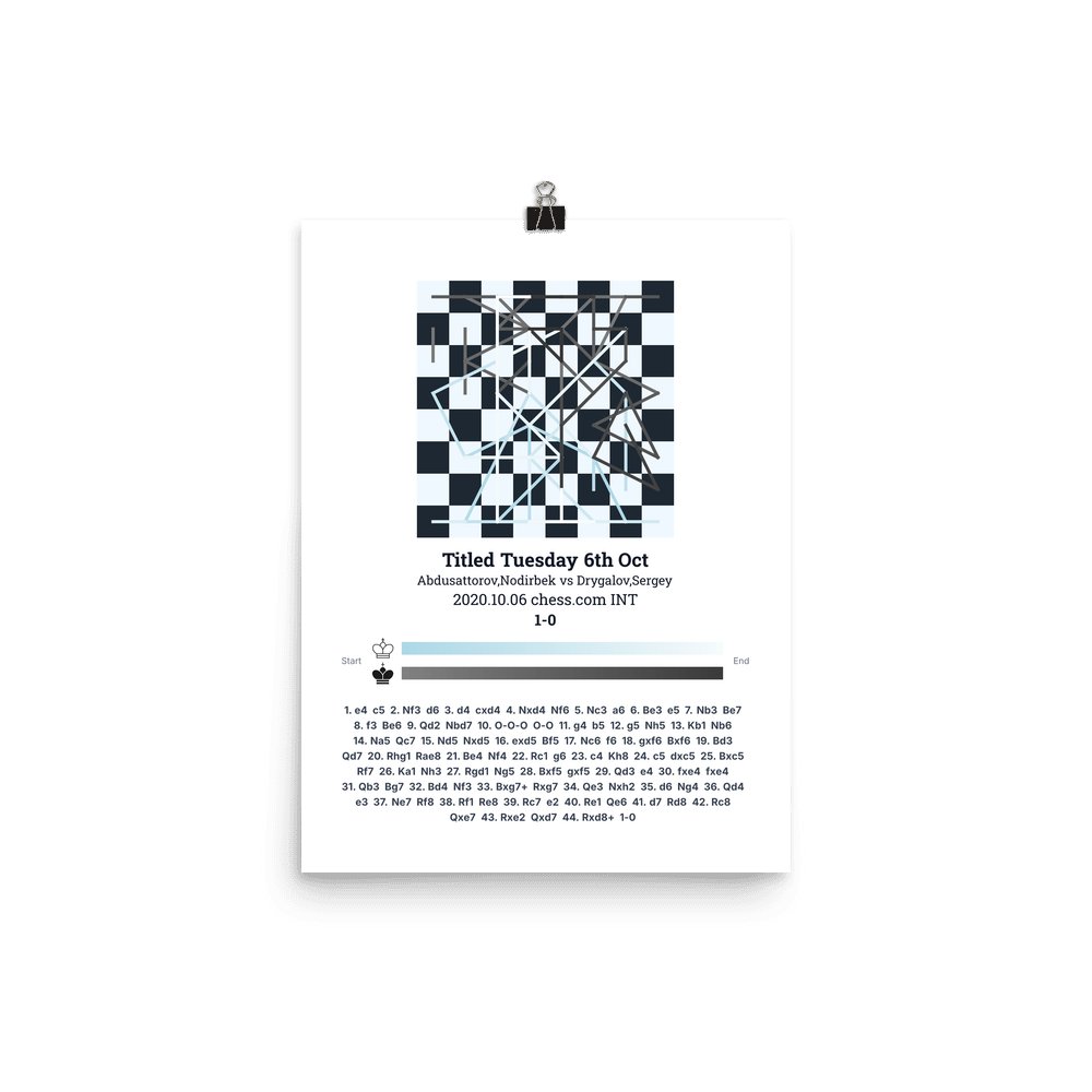 Museum-quality poster on thick, durable matte paper. A sharp, clean look for any chess visualisation.