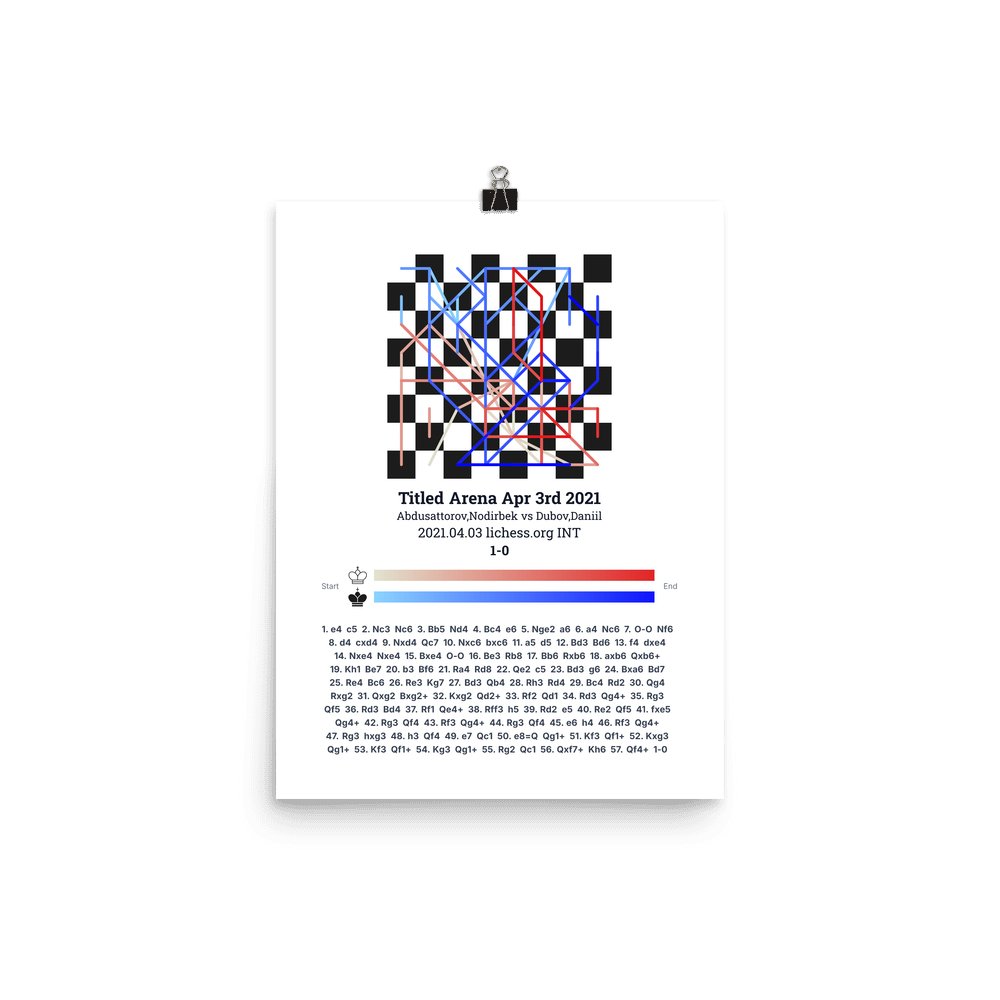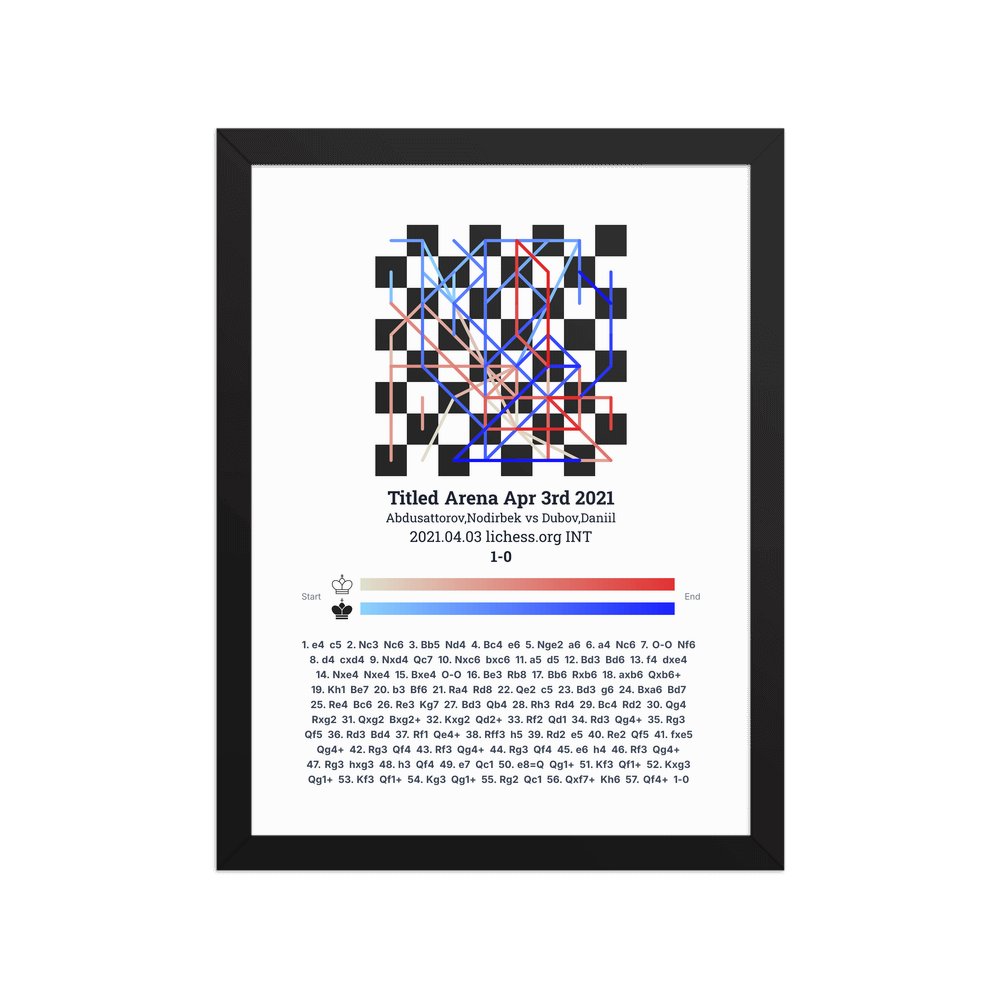 Museum-quality poster on thick, durable matte paper. A sharp, clean look for any chess visualisation.