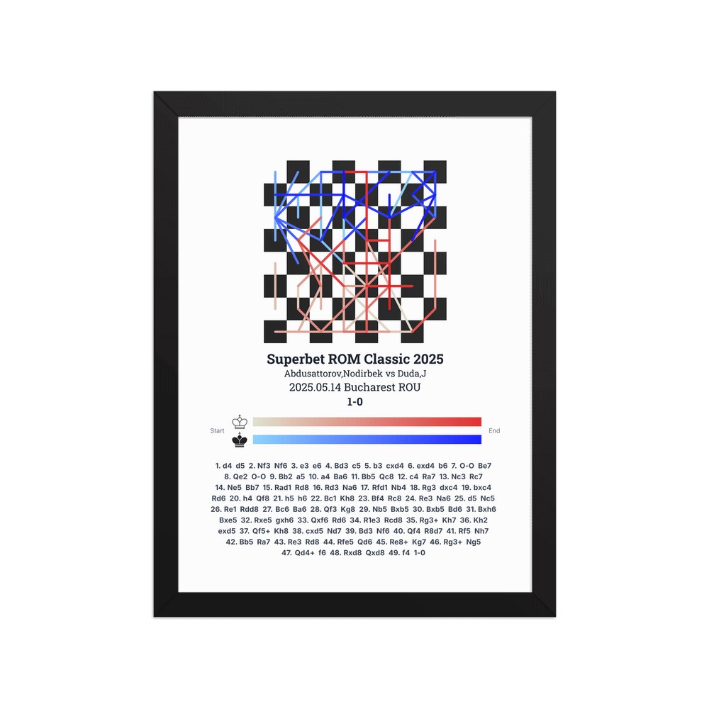 Museum-quality poster on thick, durable matte paper. A sharp, clean look for any chess visualisation.