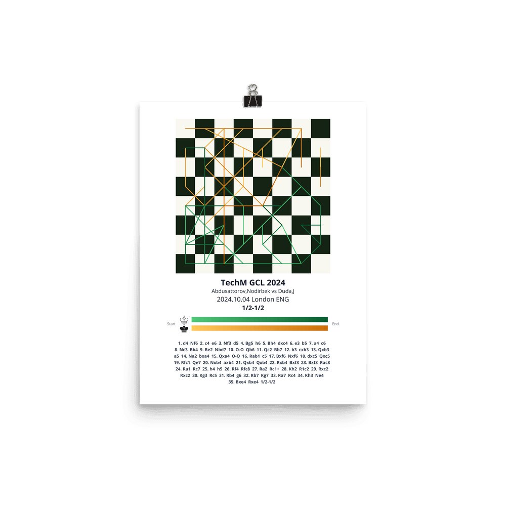 Museum-quality poster on thick, durable matte paper. A sharp, clean look for any chess visualisation.