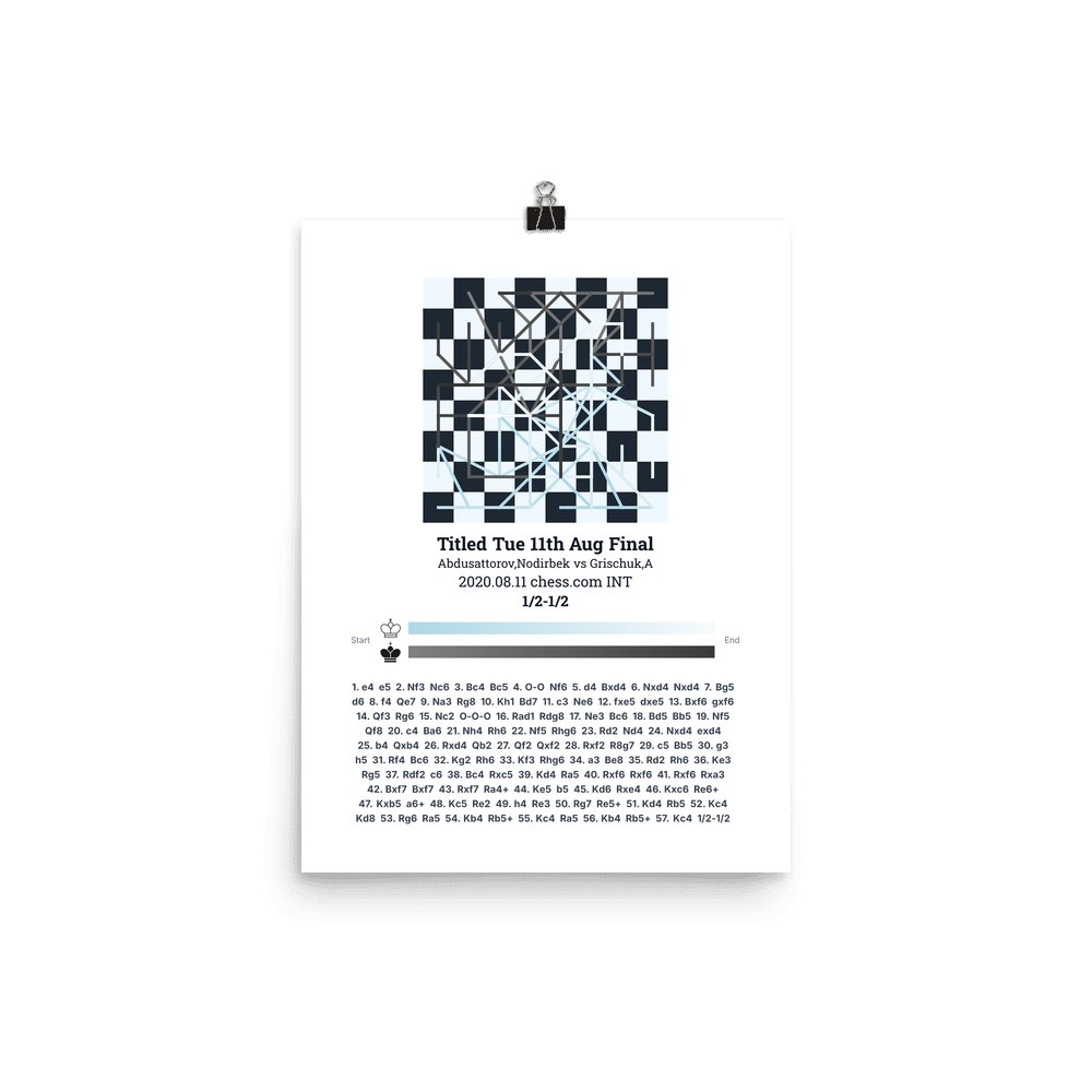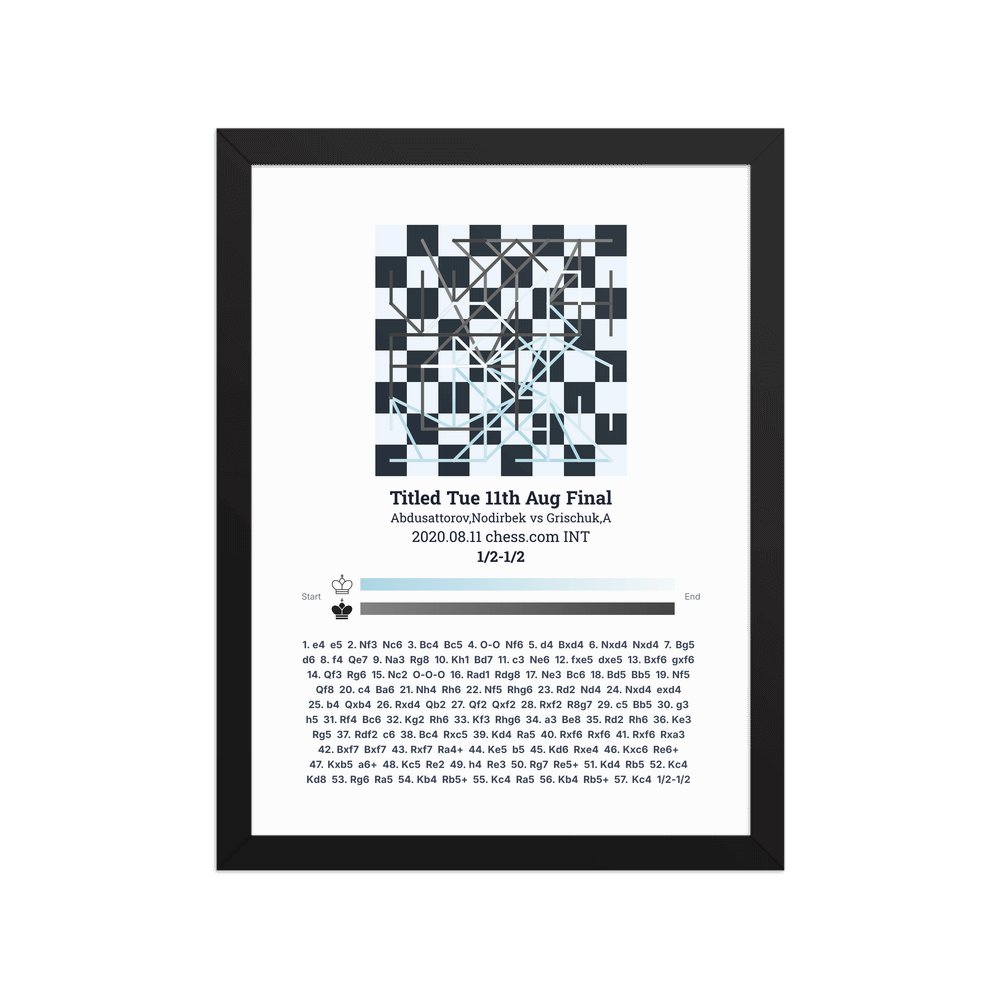 Museum-quality poster on thick, durable matte paper. A sharp, clean look for any chess visualisation.
