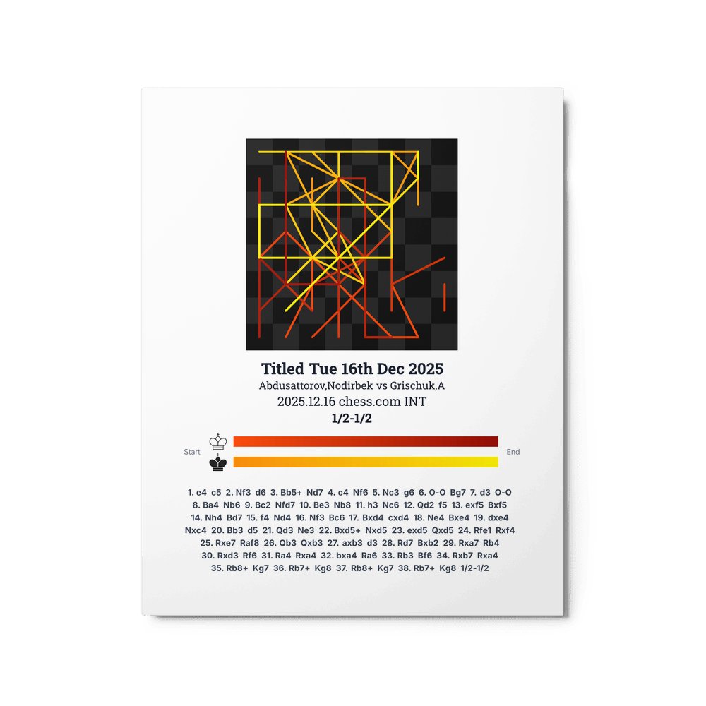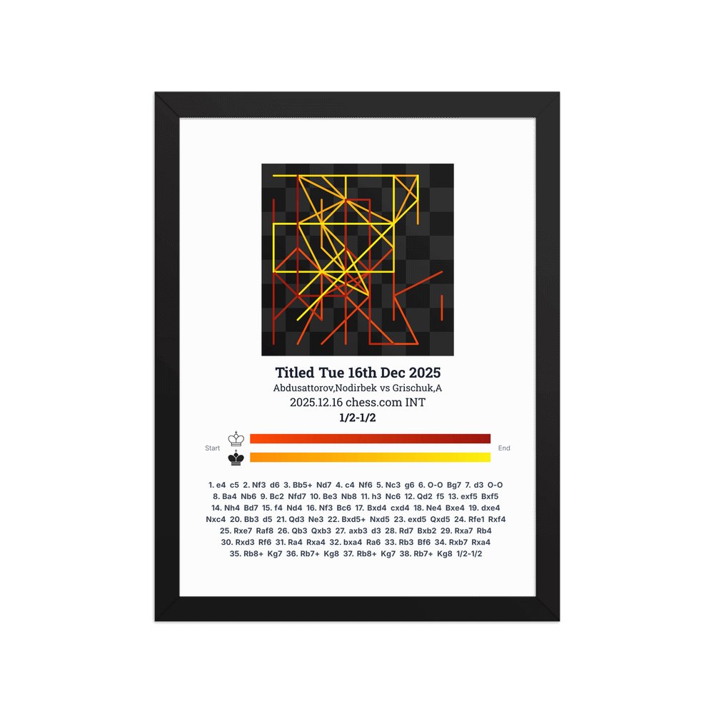 Museum-quality poster on thick, durable matte paper. A sharp, clean look for any chess visualisation.