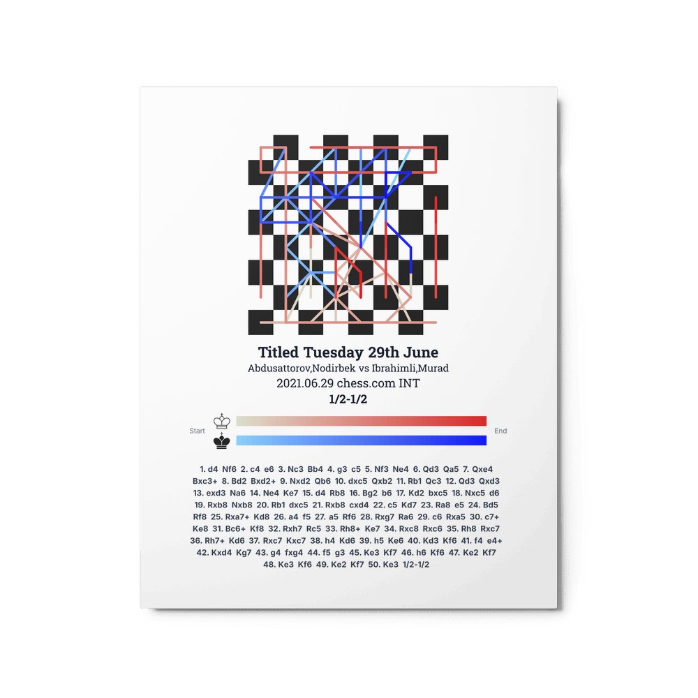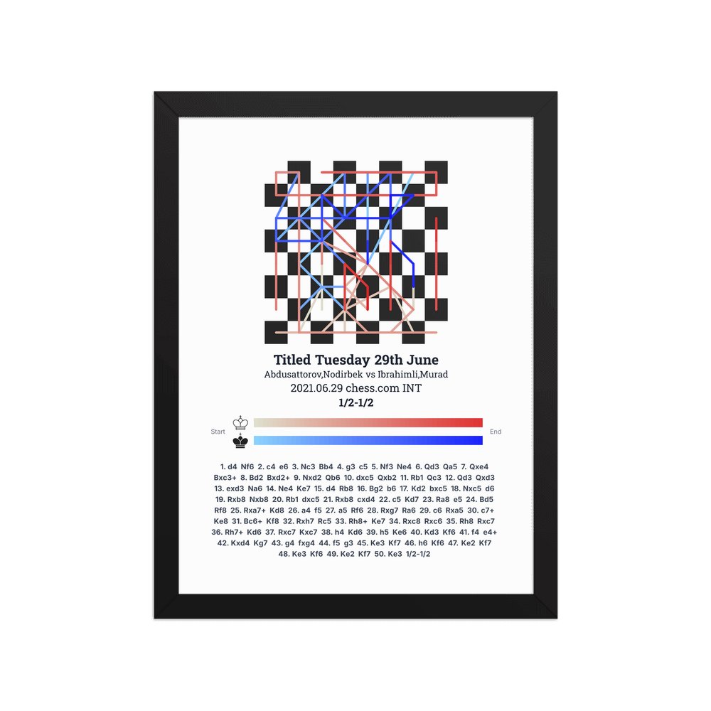 Museum-quality poster on thick, durable matte paper. A sharp, clean look for any chess visualisation.