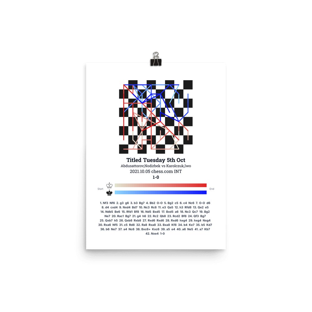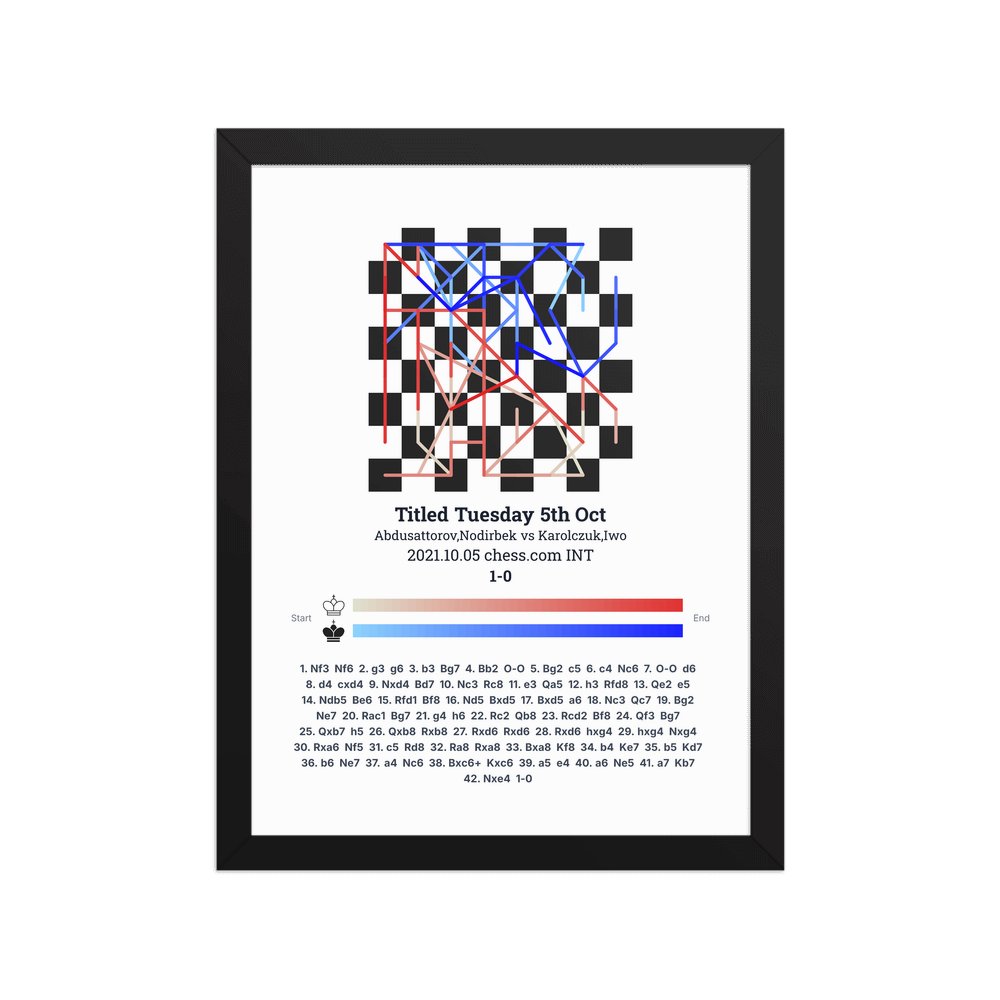 Museum-quality poster on thick, durable matte paper. A sharp, clean look for any chess visualisation.