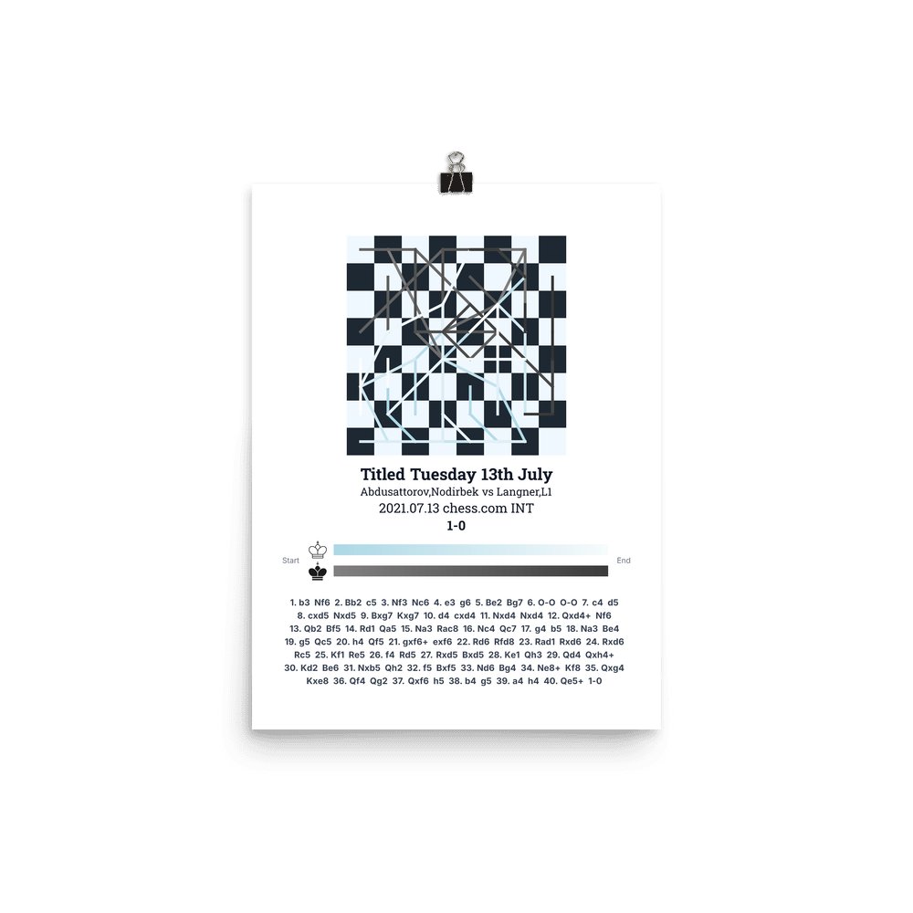Museum-quality poster on thick, durable matte paper. A sharp, clean look for any chess visualisation.