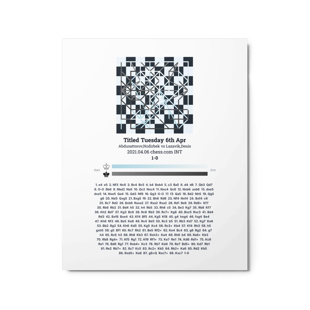Museum-quality poster on thick, durable matte paper. A sharp, clean look for any chess visualisation.