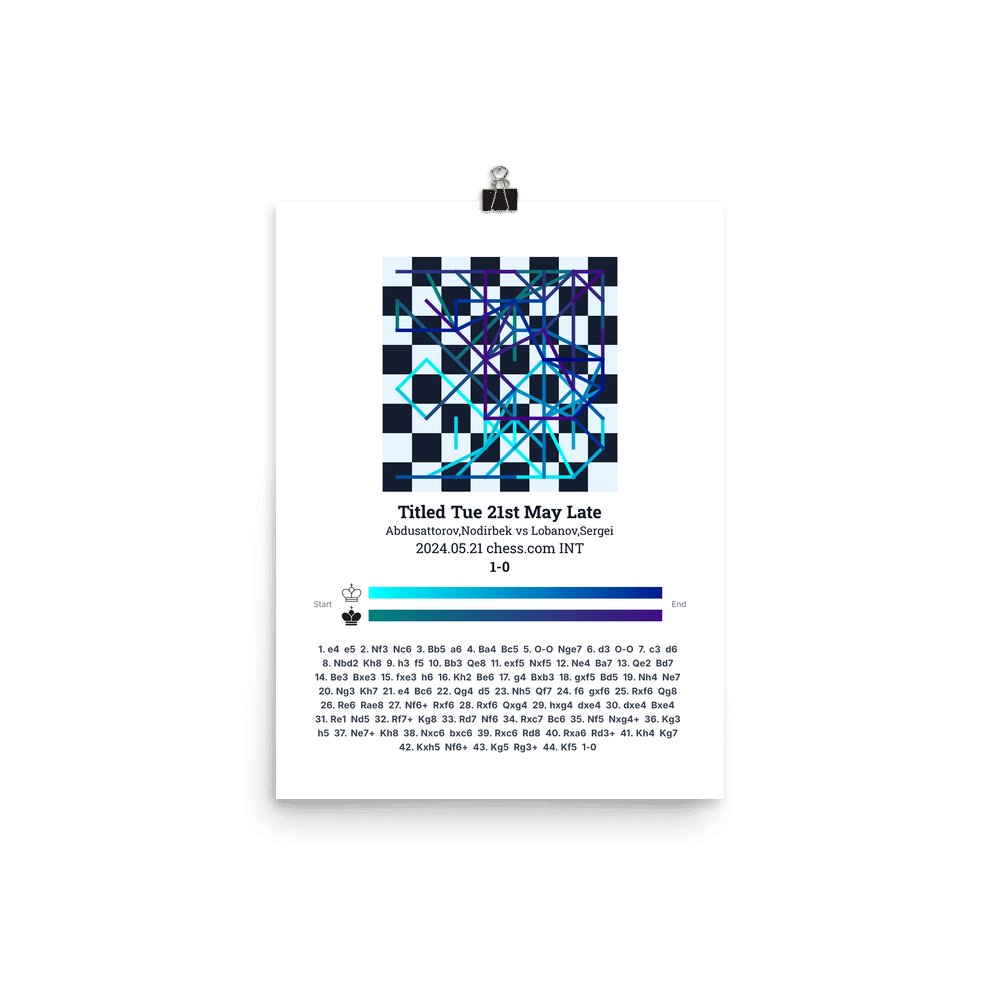 Museum-quality poster on thick, durable matte paper. A sharp, clean look for any chess visualisation.
