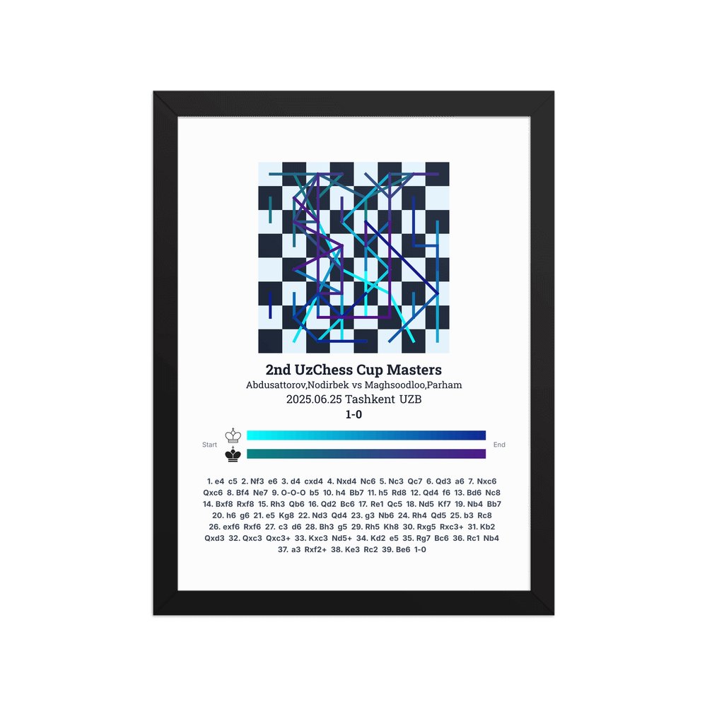 Museum-quality poster on thick, durable matte paper. A sharp, clean look for any chess visualisation.