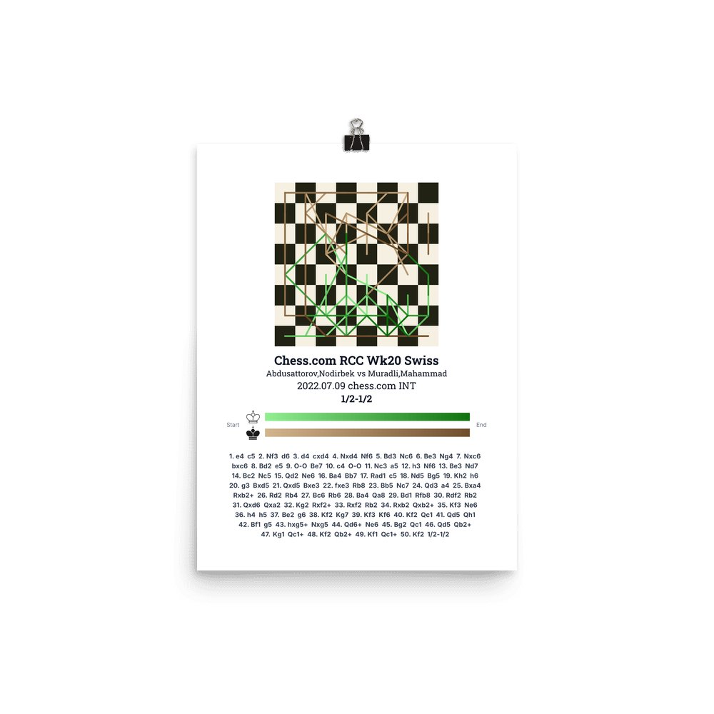 Museum-quality poster on thick, durable matte paper. A sharp, clean look for any chess visualisation.