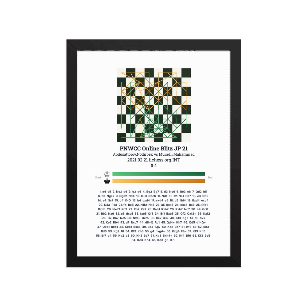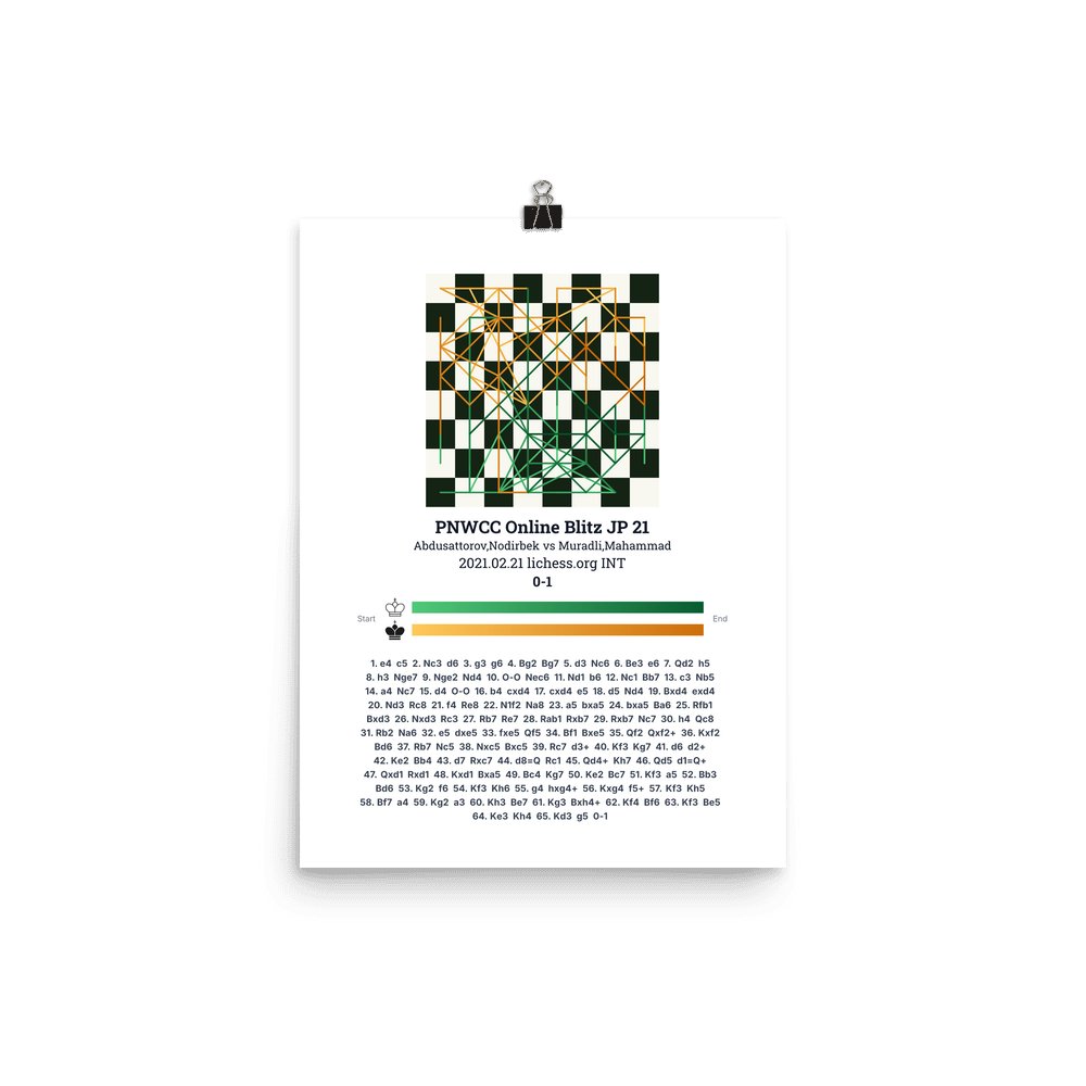 Museum-quality poster on thick, durable matte paper. A sharp, clean look for any chess visualisation.