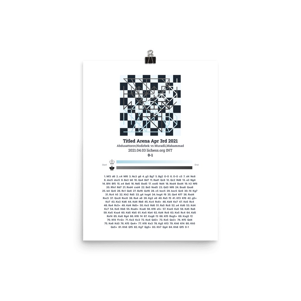 Museum-quality poster on thick, durable matte paper. A sharp, clean look for any chess visualisation.