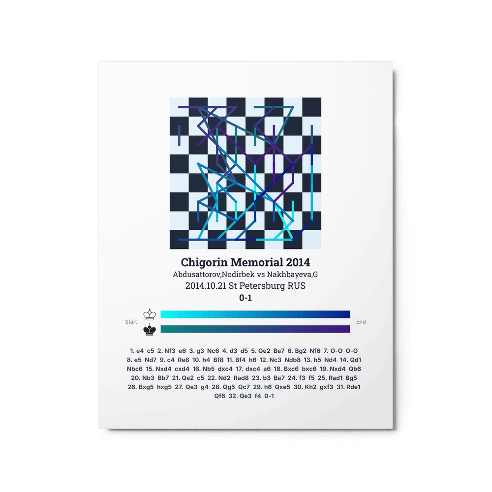 Museum-quality poster on thick, durable matte paper. A sharp, clean look for any chess visualisation.