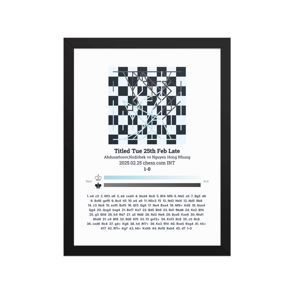 Museum-quality poster on thick, durable matte paper. A sharp, clean look for any chess visualisation.
