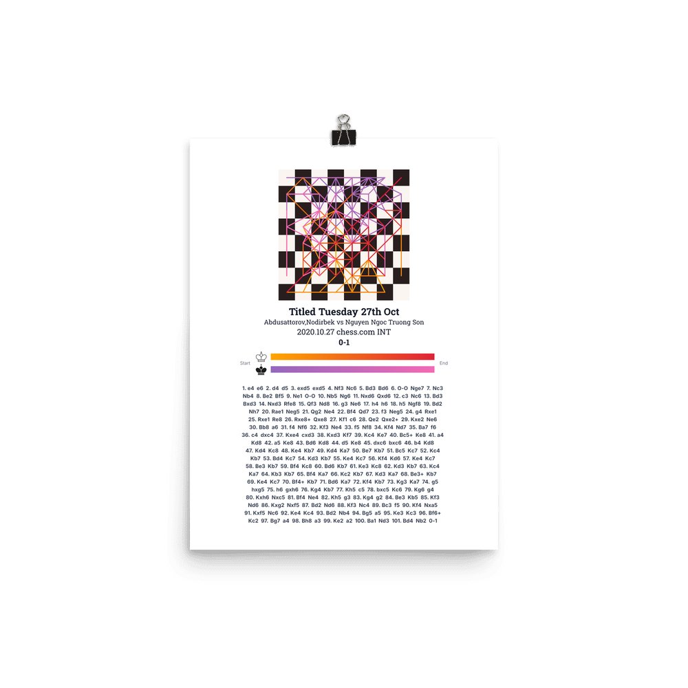 Museum-quality poster on thick, durable matte paper. A sharp, clean look for any chess visualisation.