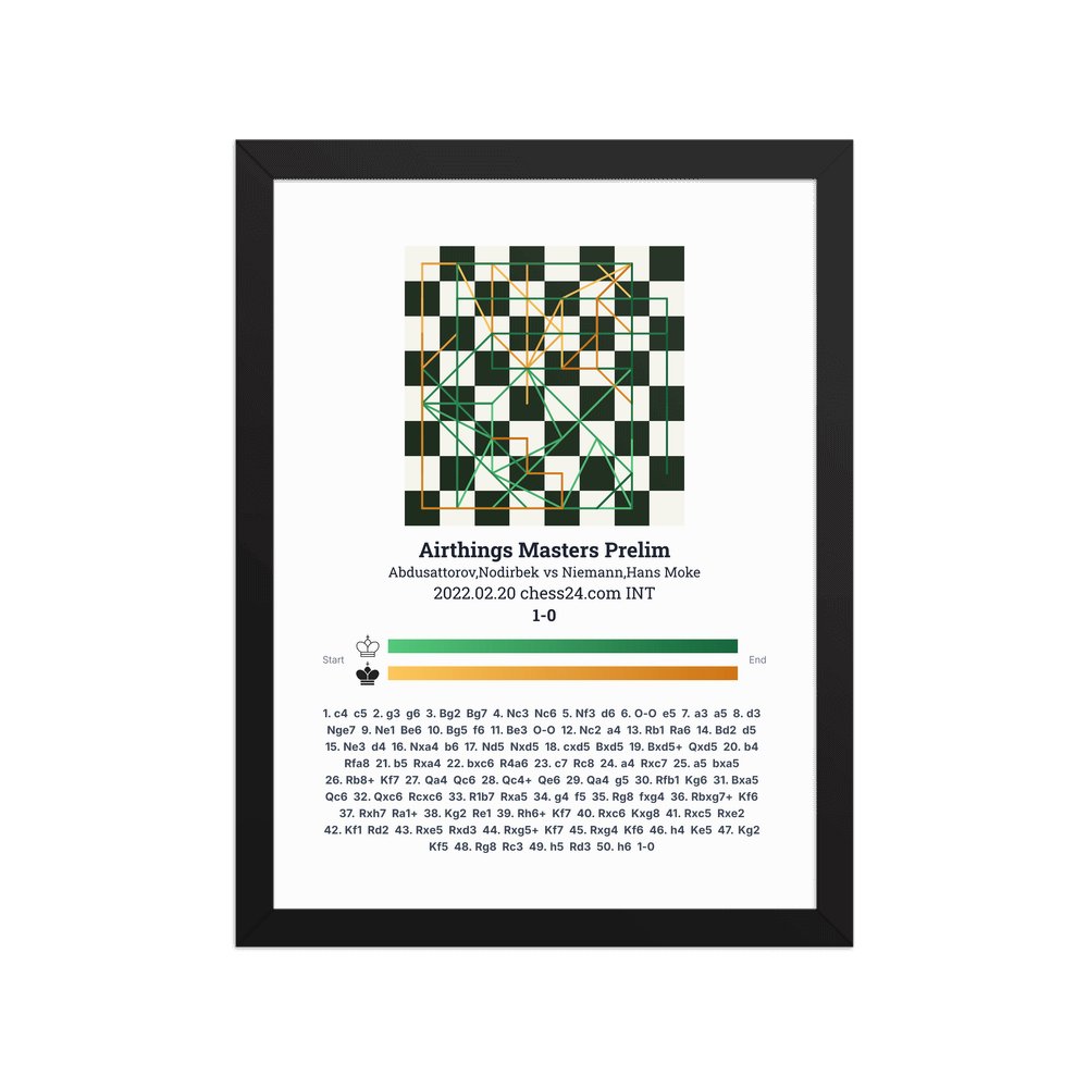 Museum-quality poster on thick, durable matte paper. A sharp, clean look for any chess visualisation.