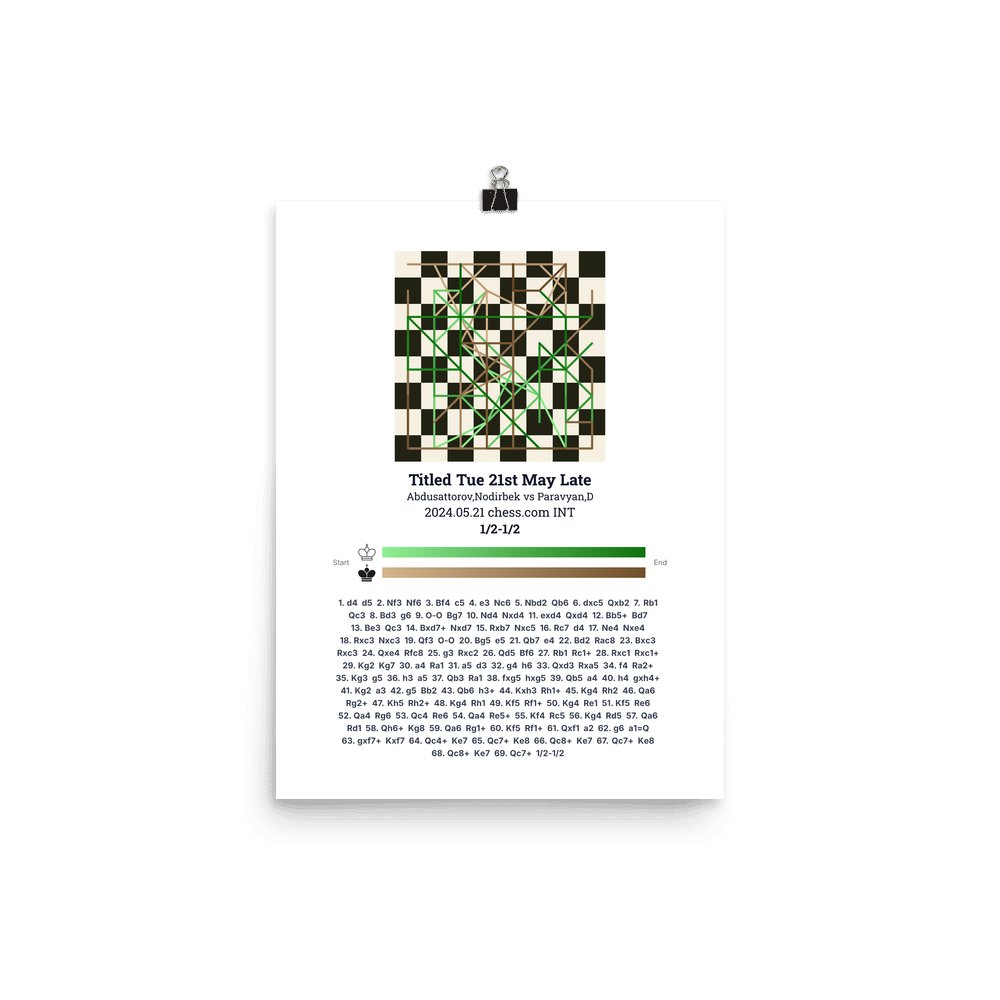 Museum-quality poster on thick, durable matte paper. A sharp, clean look for any chess visualisation.