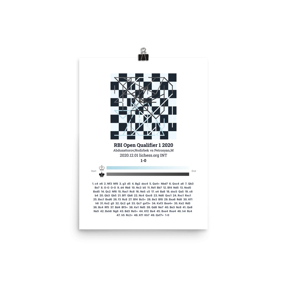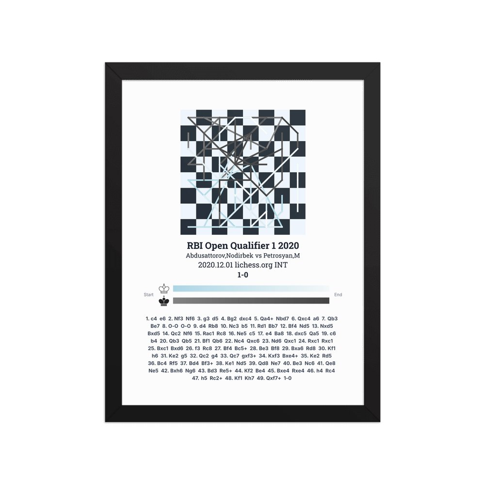 Museum-quality poster on thick, durable matte paper. A sharp, clean look for any chess visualisation.