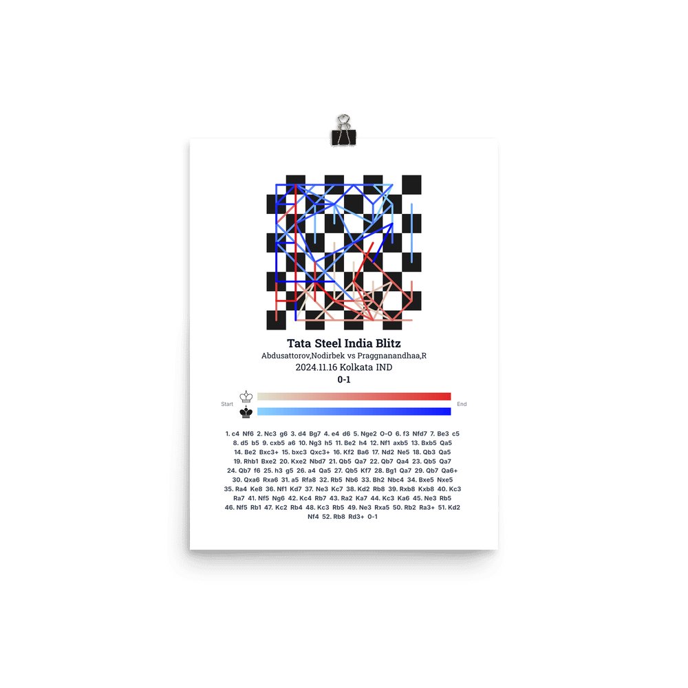 Museum-quality poster on thick, durable matte paper. A sharp, clean look for any chess visualisation.