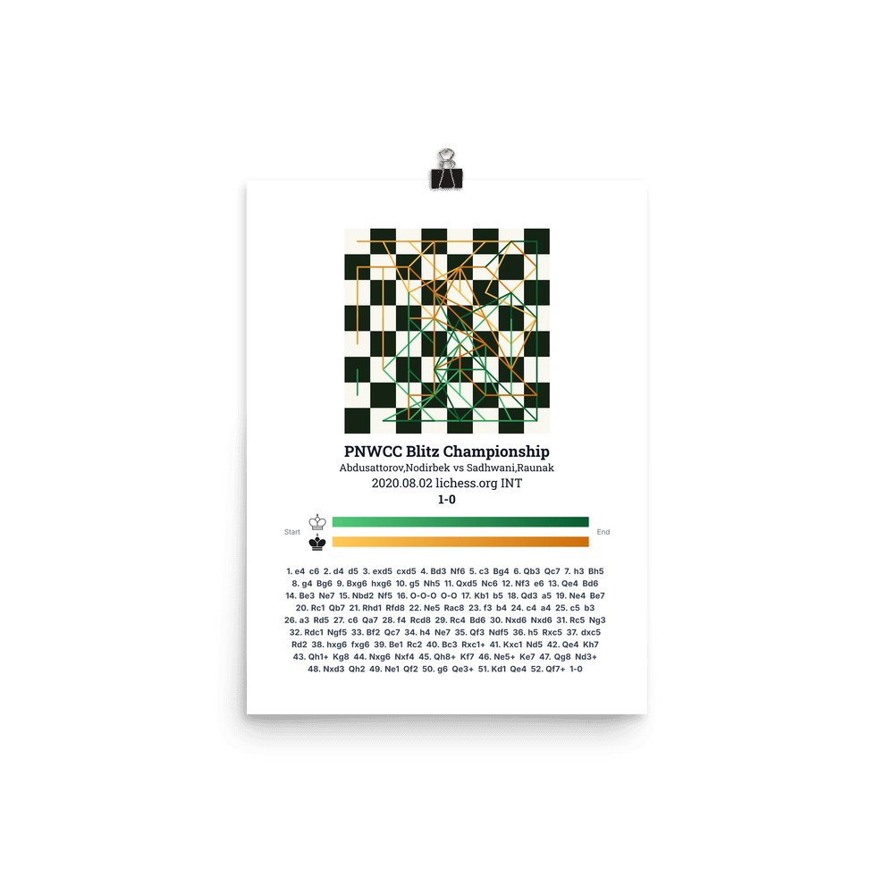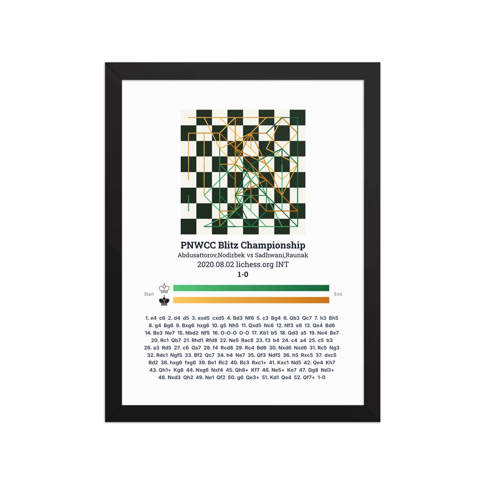 Museum-quality poster on thick, durable matte paper. A sharp, clean look for any chess visualisation.