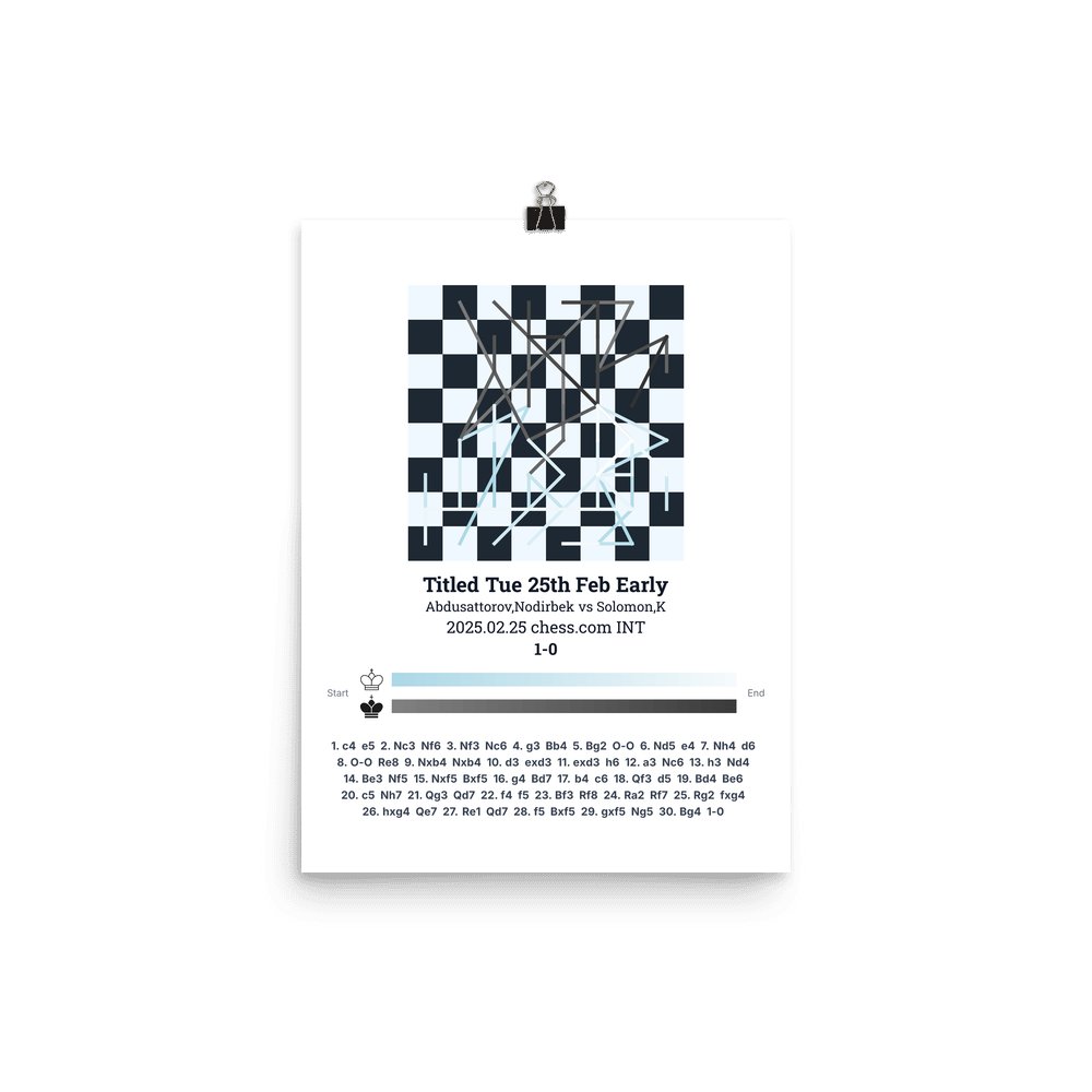 Museum-quality poster on thick, durable matte paper. A sharp, clean look for any chess visualisation.