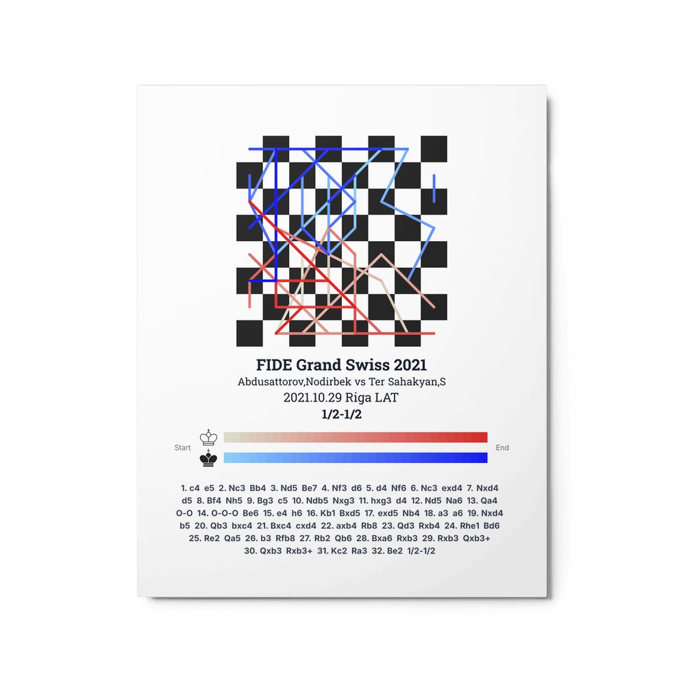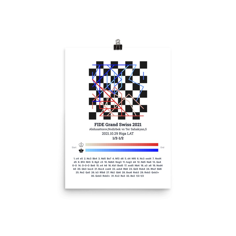 Museum-quality poster on thick, durable matte paper. A sharp, clean look for any chess visualisation.