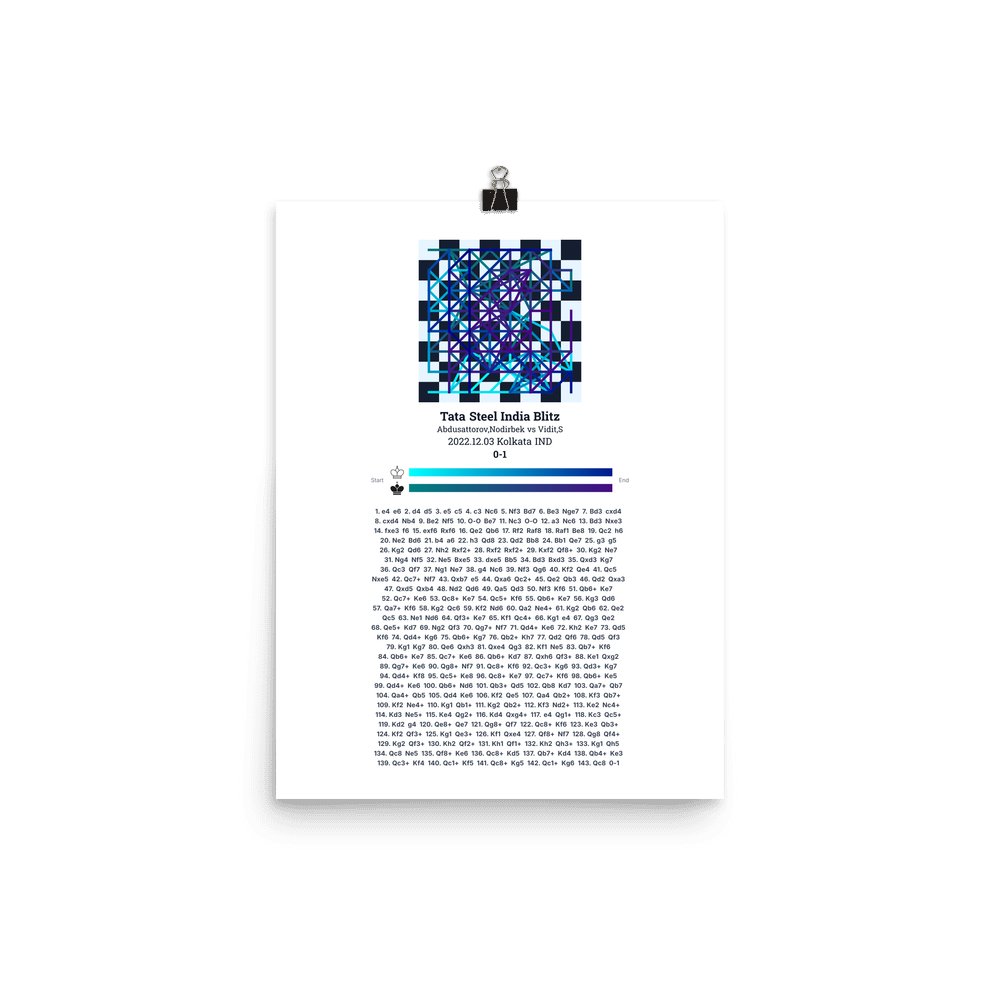 Museum-quality poster on thick, durable matte paper. A sharp, clean look for any chess visualisation.
