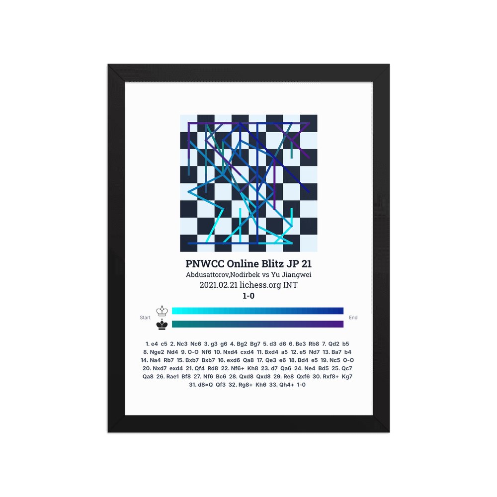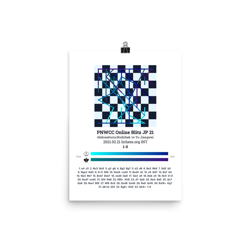 Museum-quality poster on thick, durable matte paper. A sharp, clean look for any chess visualisation.