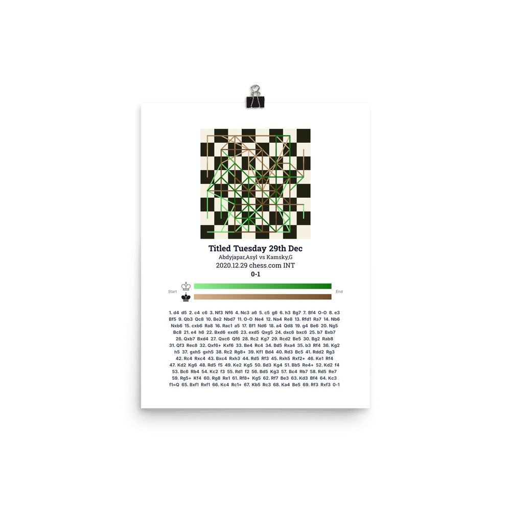 Museum-quality poster on thick, durable matte paper. A sharp, clean look for any chess visualisation.