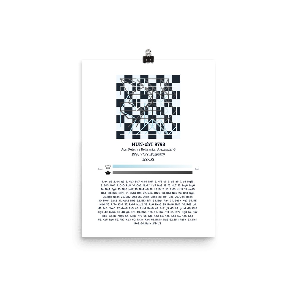 Museum-quality poster on thick, durable matte paper. A sharp, clean look for any chess visualisation.