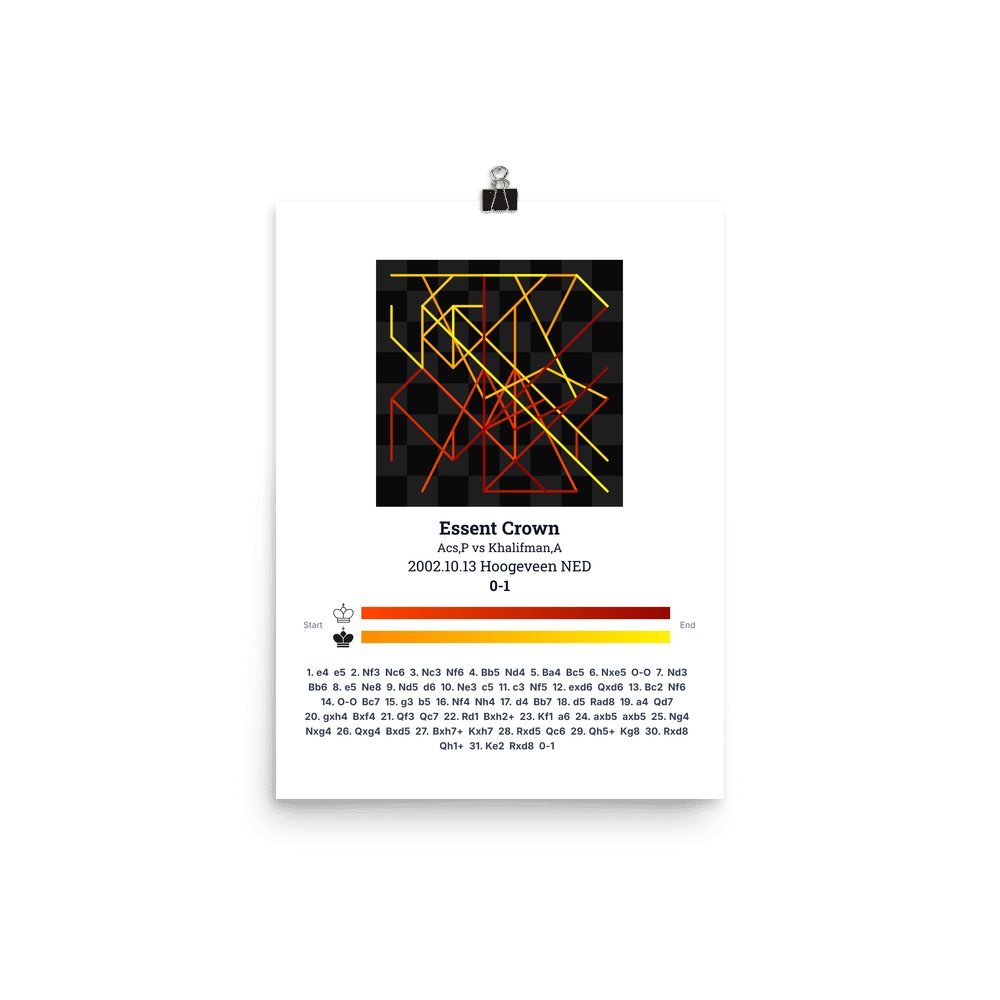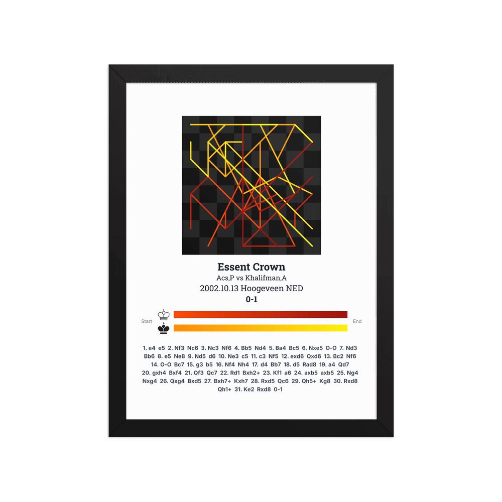 Museum-quality poster on thick, durable matte paper. A sharp, clean look for any chess visualisation.