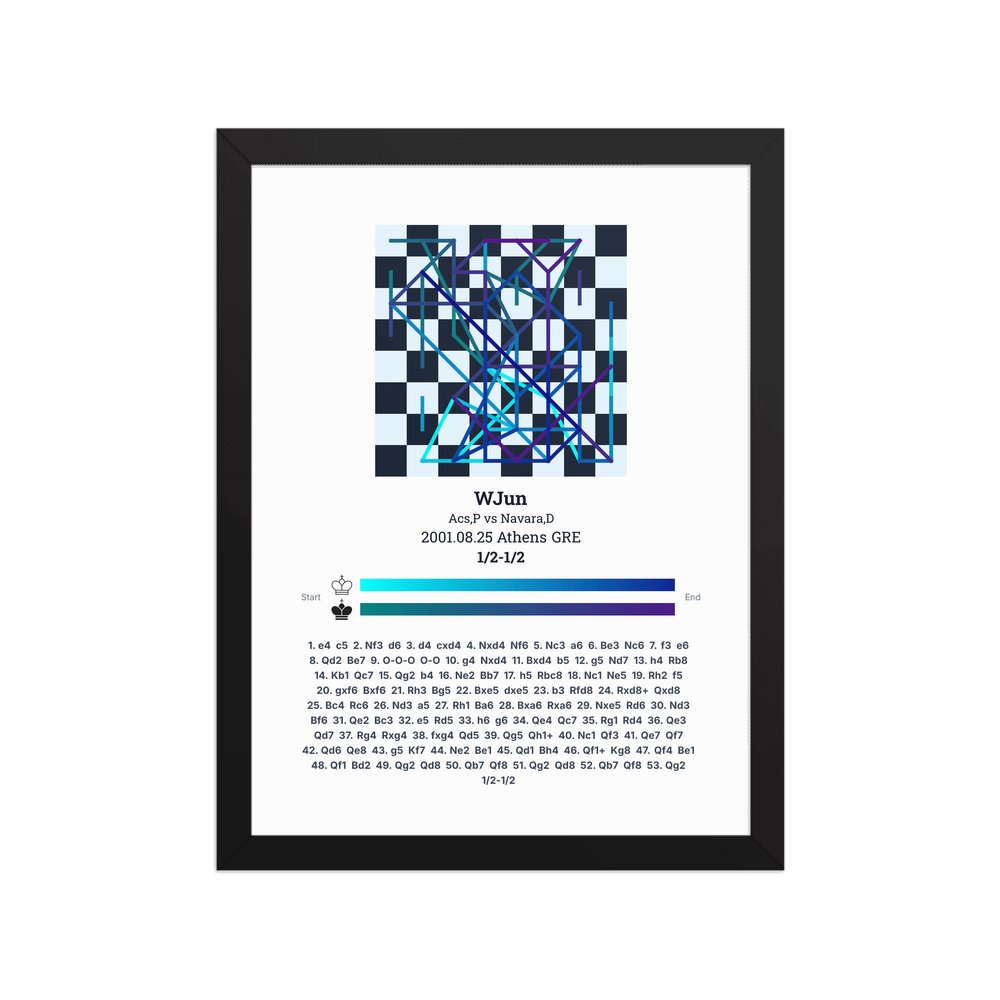 Museum-quality poster on thick, durable matte paper. A sharp, clean look for any chess visualisation.