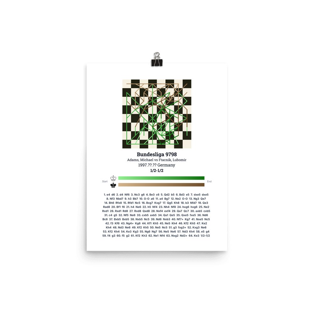 Museum-quality poster on thick, durable matte paper. A sharp, clean look for any chess visualisation.