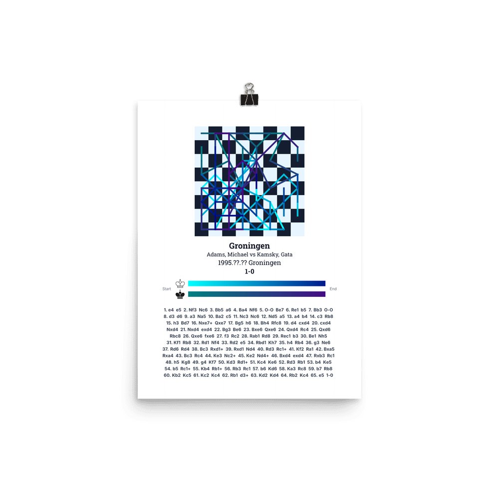 Museum-quality poster on thick, durable matte paper. A sharp, clean look for any chess visualisation.