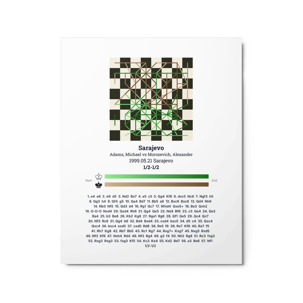 Museum-quality poster on thick, durable matte paper. A sharp, clean look for any chess visualisation.