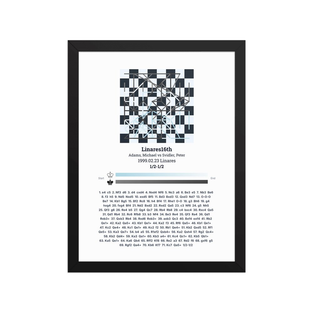 Museum-quality poster on thick, durable matte paper. A sharp, clean look for any chess visualisation.