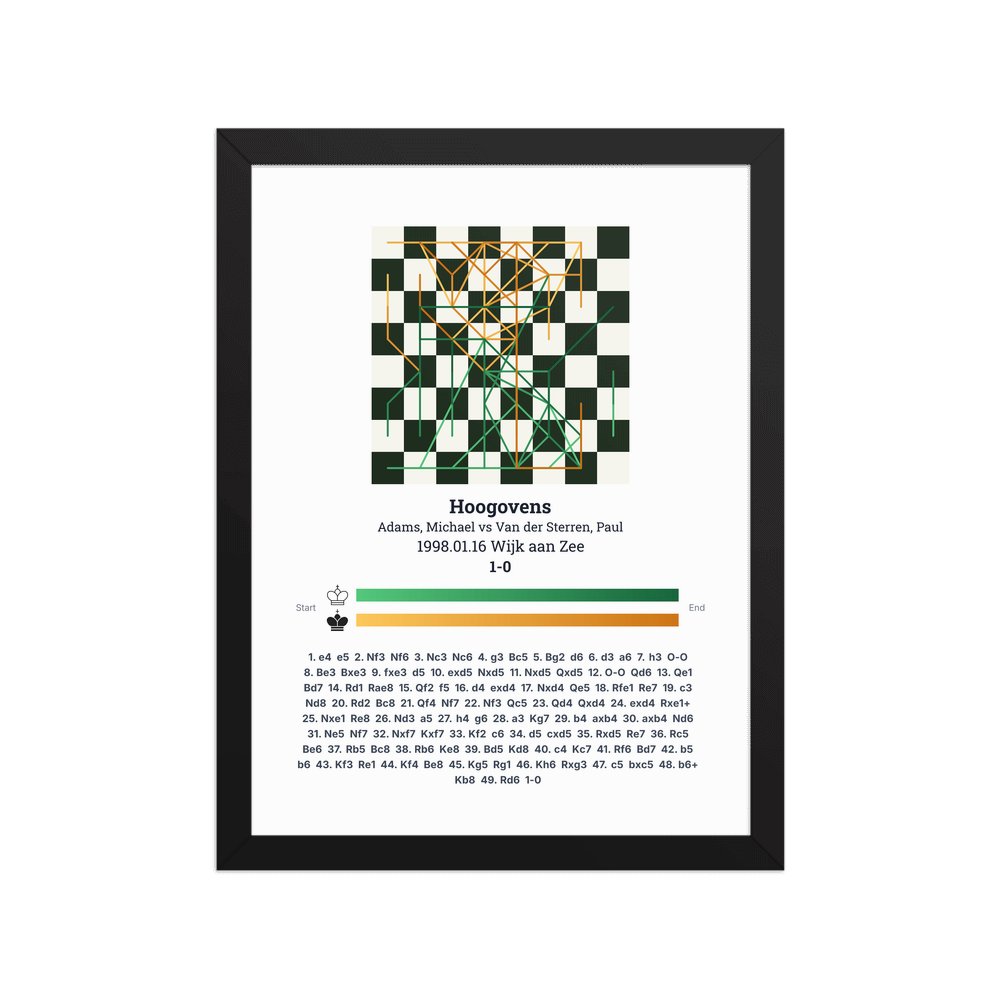 Museum-quality poster on thick, durable matte paper. A sharp, clean look for any chess visualisation.