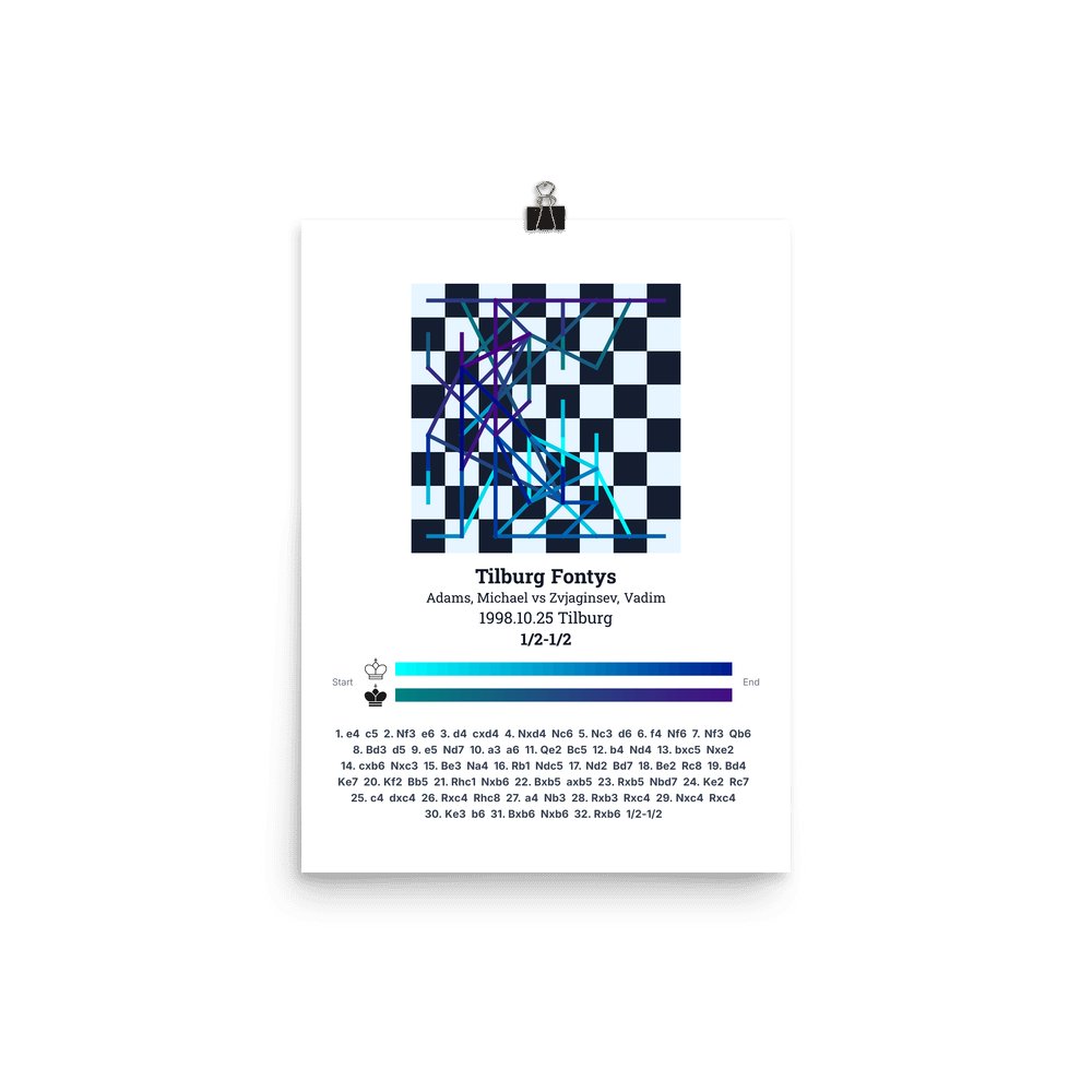 Museum-quality poster on thick, durable matte paper. A sharp, clean look for any chess visualisation.