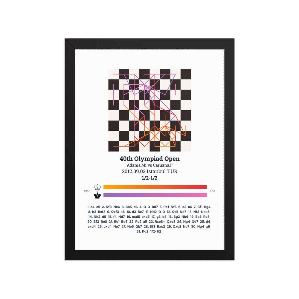 Museum-quality poster on thick, durable matte paper. A sharp, clean look for any chess visualisation.