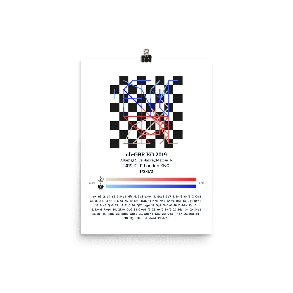 Museum-quality poster on thick, durable matte paper. A sharp, clean look for any chess visualisation.