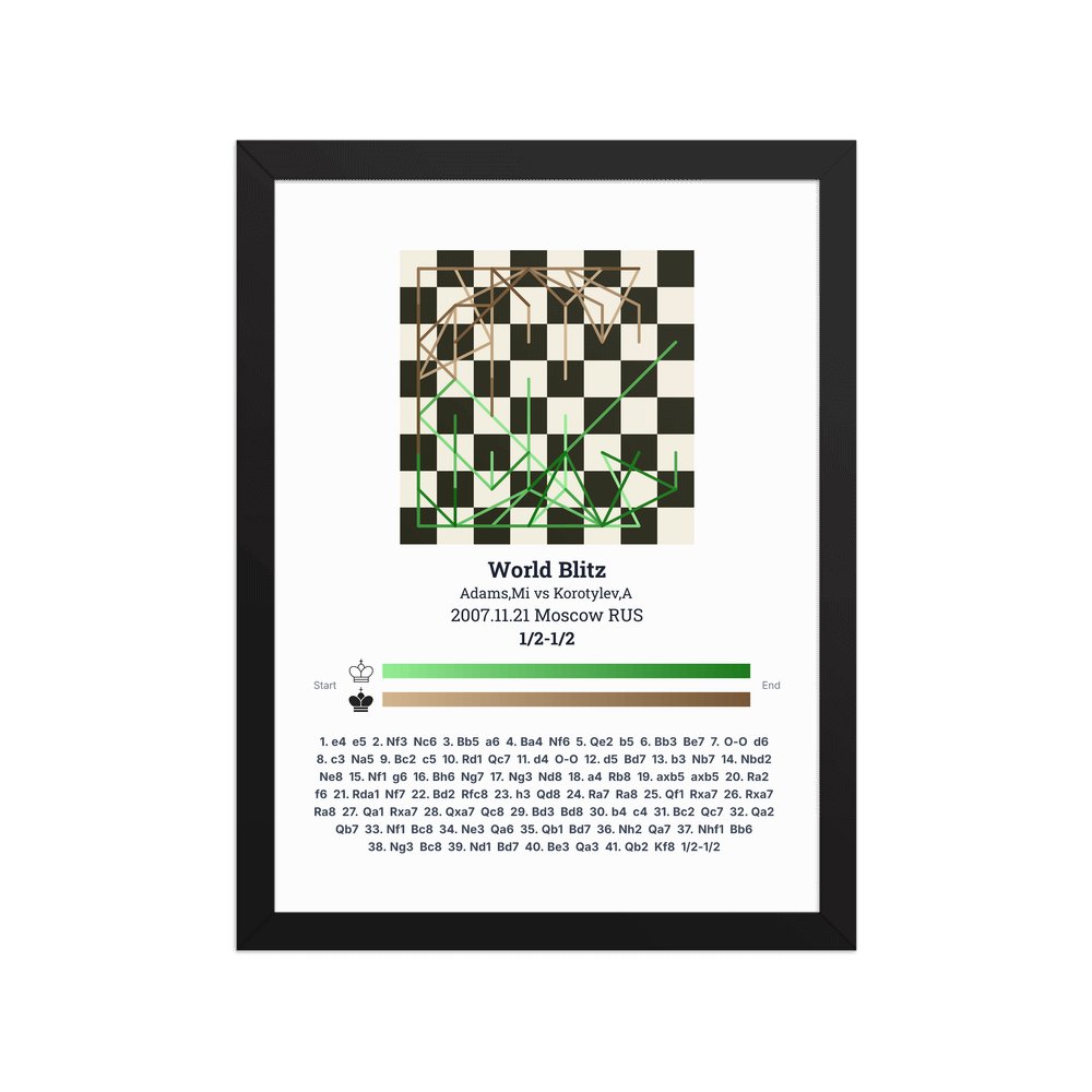 Museum-quality poster on thick, durable matte paper. A sharp, clean look for any chess visualisation.
