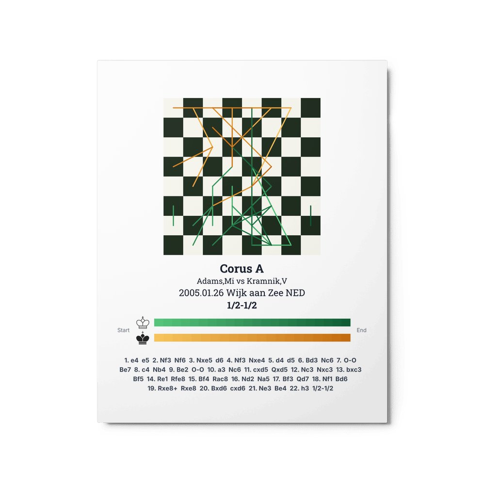 Museum-quality poster on thick, durable matte paper. A sharp, clean look for any chess visualisation.