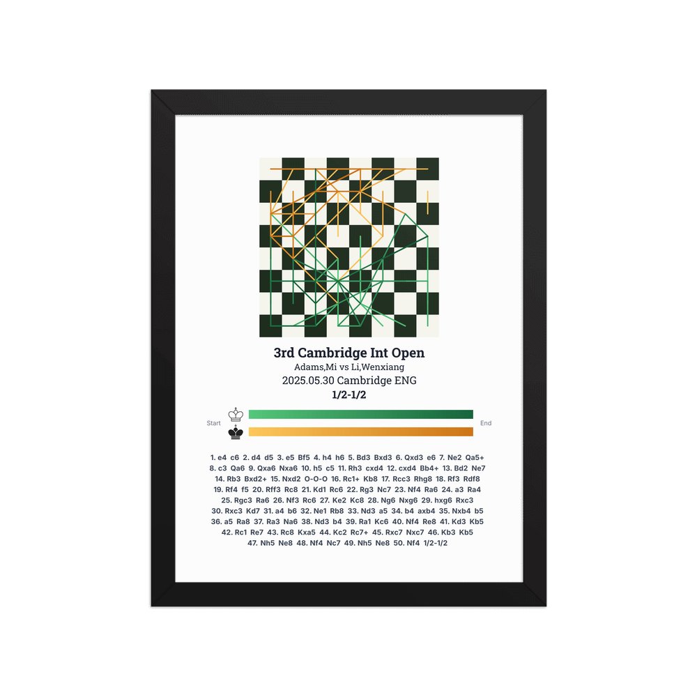 Museum-quality poster on thick, durable matte paper. A sharp, clean look for any chess visualisation.